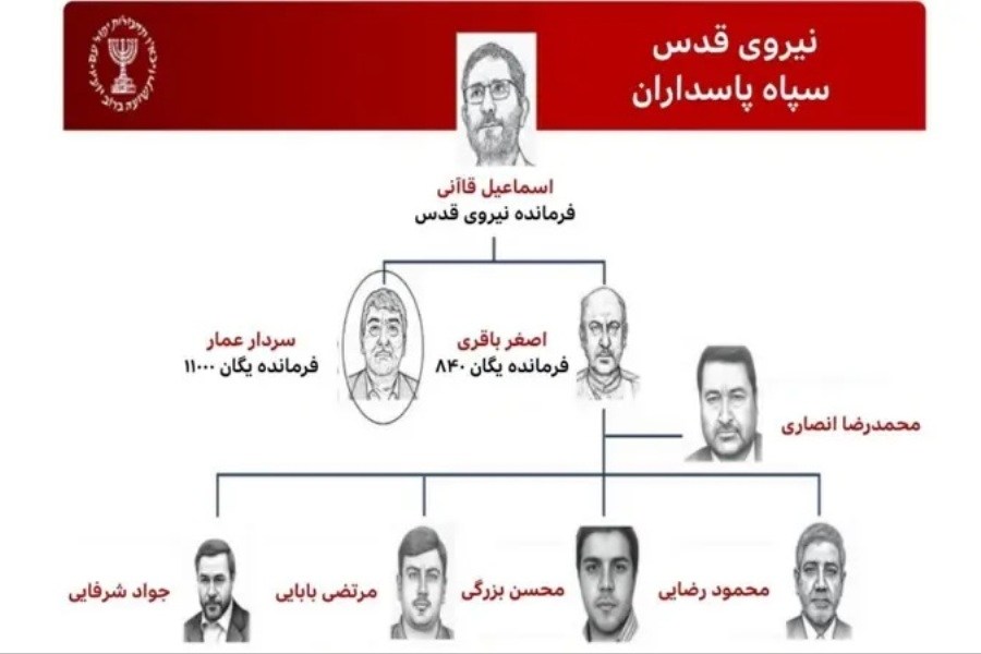 اسرائیل همراه با این بیانیه چارتی را هم به زبان عبری از ساختار فرماندهی نیروی قدس سپاه منتشر کرده است که در آن سردار عمار مستقیما زیر نظر اسماعیل قاآنی، فرماند سپاه قدس قرار دارد.