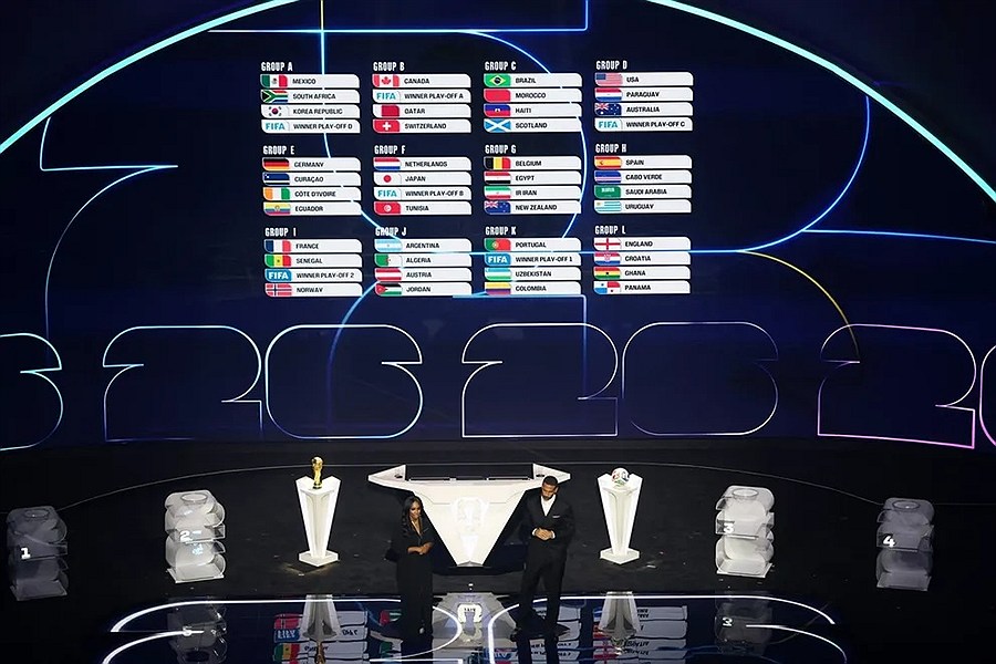 رئیس فیفا همچنین در ادامه از دونالد ترامپ، رئیس جمهور ایالات متحده آمریکا، مارک کارنی، نخستوزیر کانادا و کلاودیا شانباوم را برای قرعهکشی روی صحنه دعوت کرد و آنها به صورت نمادین نام کشورهای خود را از گوی در آوردند.