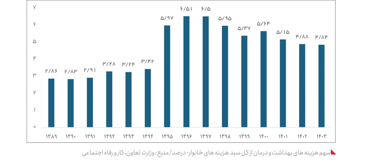 در بخش بهداشت و درمان هم هزینهها از سال 1394 تا 1397 جهشی قابل توجه داشته است. بر اساس گزارش وزارت تعاون، کار و رفاه اجتماعی گروههای کمدرآمد تنها از خدمات سلامت ضروری استفاده کردند و در بسیاری از موارد به خوددرمانی روی آوردند. در این دوره استفاده از خدماتی مانند خدمات دندانپزشکی از اولویتهای هزینهای آنها خارج شده است.