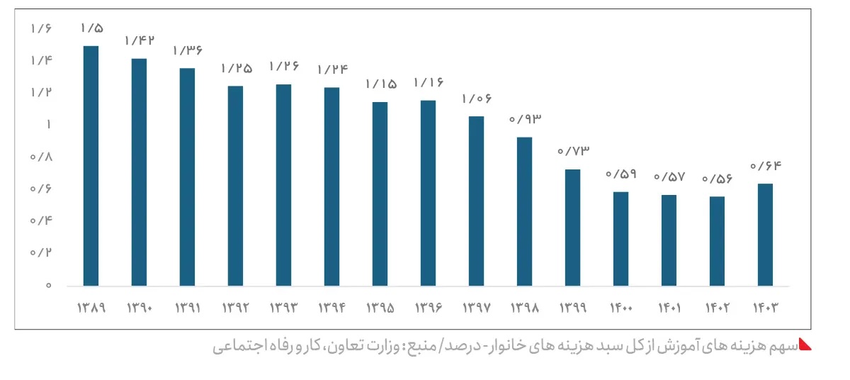 بهطور طبیعی وقتی فقر افزایش پیدا میکند، سهم هزینههای خوراک و مسکن کم میشود و این اتفاق با شدت بیشتری در بخش آموزش میافتد. سهم آموزش از سال 1389 کم شده و از 1/50 درصد هزینههای خانوار به 0/64 درصد هزینهها رسیده.