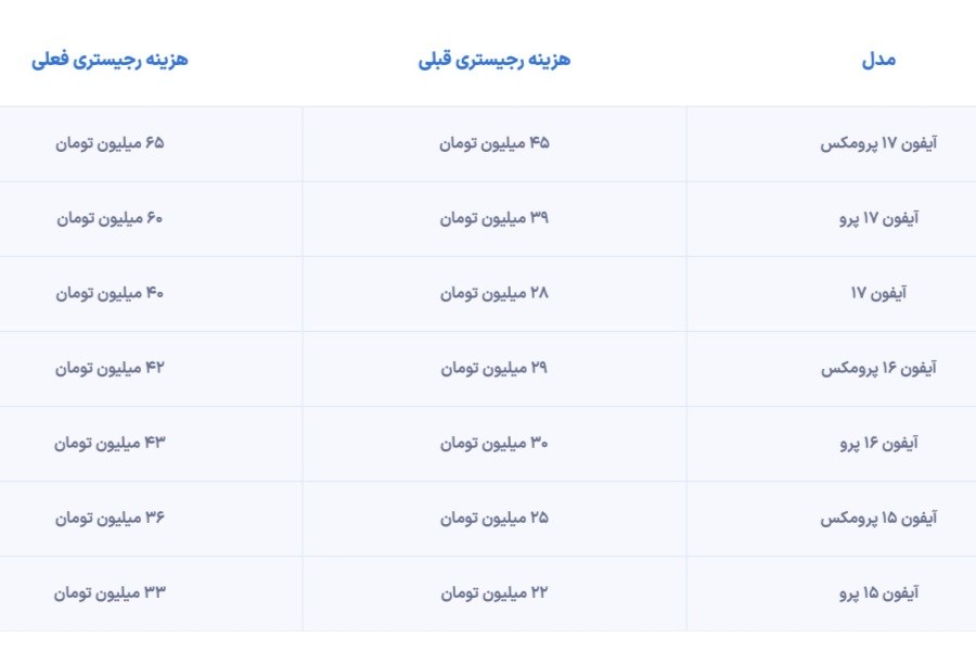 همچنین هزینه رجیستری آیفون ۱۷ پرو از ۳۹ میلیون تومان به ۶۰ میلیون تومان افزایش یافته است.