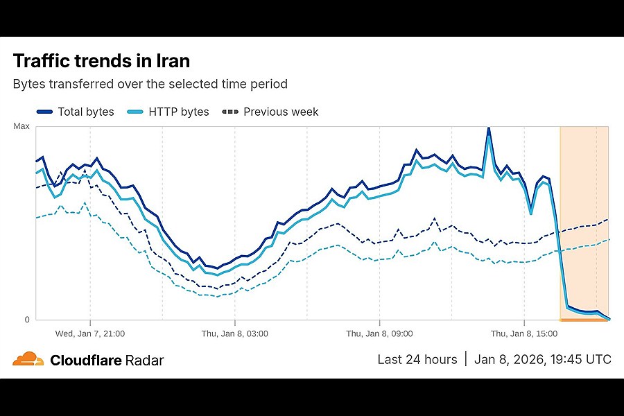 به گزارش آیندگان؛ نتبلاکس و کلاودفلر فایت، دو گروه پایش اینترنت، گفتهاند که از شامگاه پنجشنبه ایران با یک قطعی سراسری اینترنت روبهرو شده است؛ قطعیای که اندکی پس از آن رخ داد که در پی فراخوانهای سراسری برای اعتراض، جمعیتهای عظیمی به خیابانها آمدند.